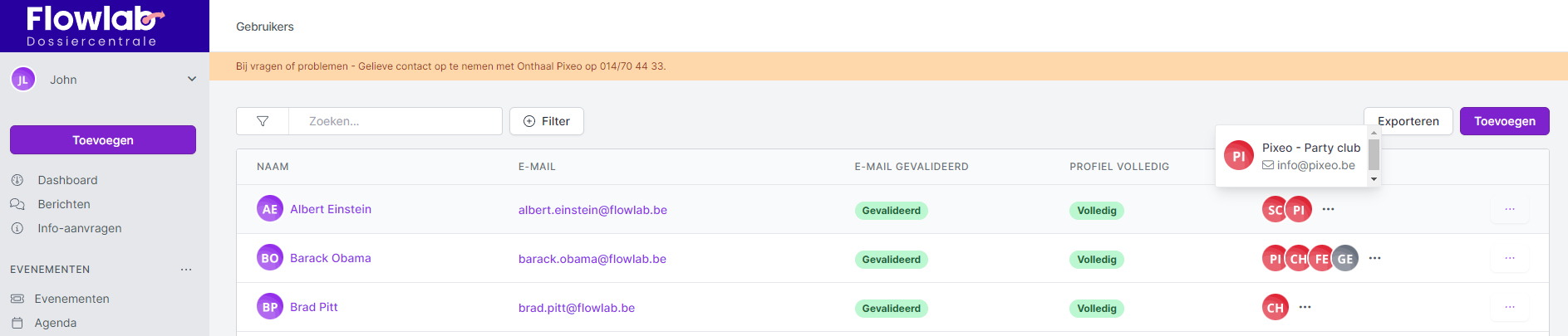 *Bij de opstart van Flowlab voor je gemeente maakt Pixeo een eerste gebruiker aan. Deze persoon krijgt een rol als administratiebeheerder en is verantwoordelijk voor het toevoegen van andere gebruikers (met een beheerdersrol) voor de gemeente. Meer over rollen lees je hier.