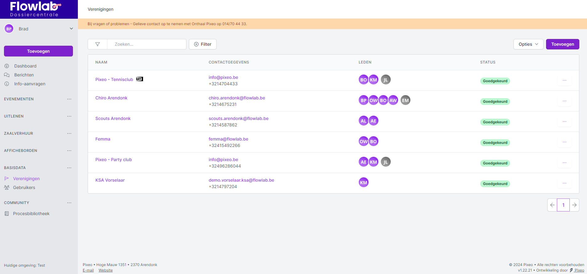 *Bij de opstart van Flowlab voor je gemeente kan je verenigingen in bulk laten toevoegen door Pixeo.