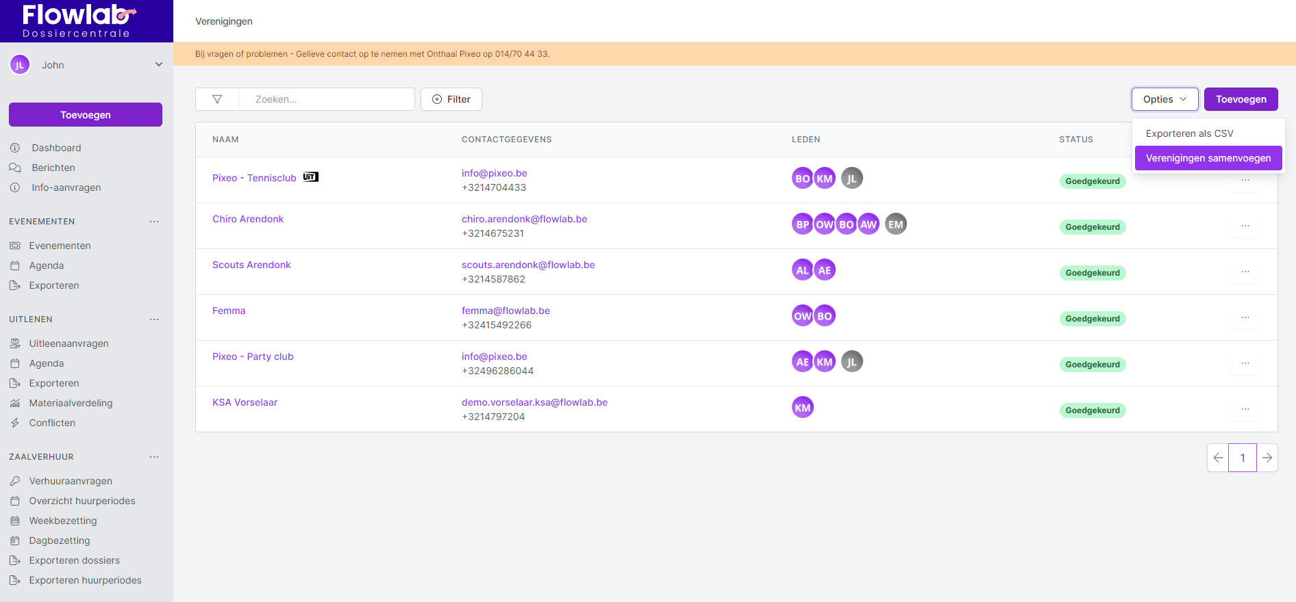 kunnen er toch fouten en dubbels ontstaan. Daarom hebben we een functie voorzien waarmee gemeentemedewerkers eenvoudig verenigingen kunnen samenvoegen.