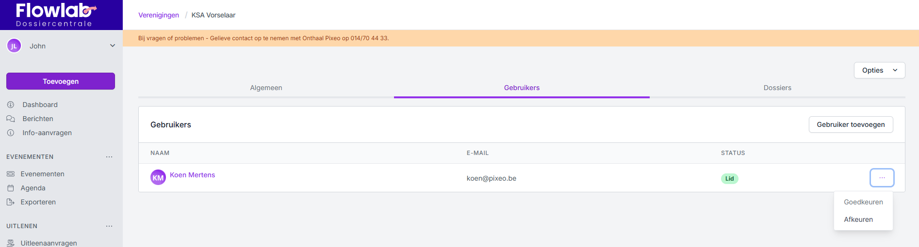 - Keur het eerste lid goed door achteraan op de drie bolletjes te klikken en Goedkeuren te selecteren.