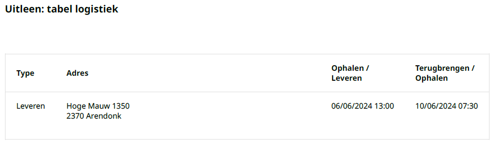 - Wanneer er zowel materialen opgehaald (na levering) of teruggebracht (na afhalen) moeten worden, worden deze apart vermeld.