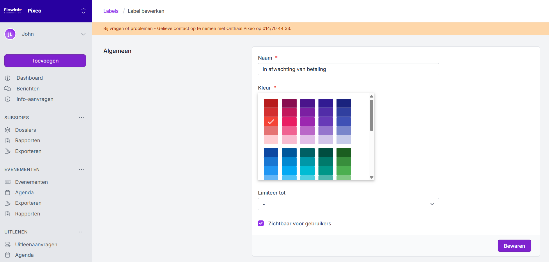 - Zichtbaar voor gebruikers - labels zijn in de eerste plaats voor intern gebruik. Wil je dat een bepaald label, zoals bijvoorbeeld 'In afwachting van betaling' ook zichtbaar is voor de gebruiker, dan vink je deze optie aan.