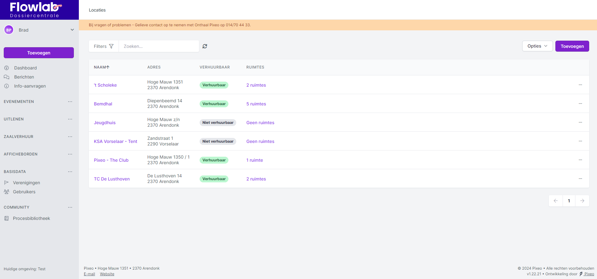 Voor de module zaalverhuur creëer je een overzicht van alle locaties die je ter beschikking wil stellen om te verhuren. Bijvoorbeeld: culturele centra, vaste feestzalen, vaste openlucht plaatsen, bibliotheek, musea, enzovoort.