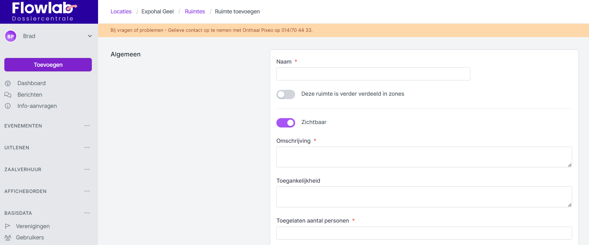 Je maakt per locatie ruimtes aan om deze beschikbaar te kunnen stellen voor verhuur.