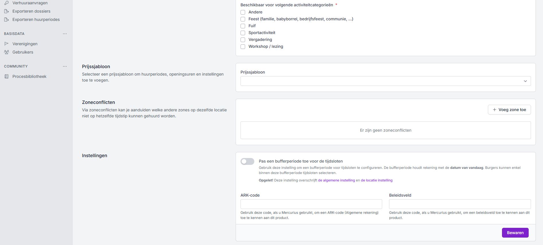 Klik nadien op 'Bewaren', dan zal de ruimte huurbaar zijn door de burger.