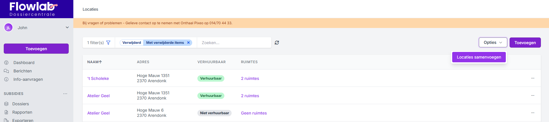 Locaties samenvoegen, doe je door de volgende stappen te volgen: