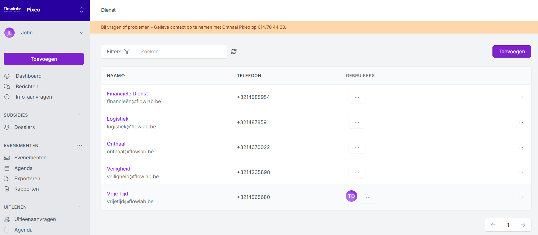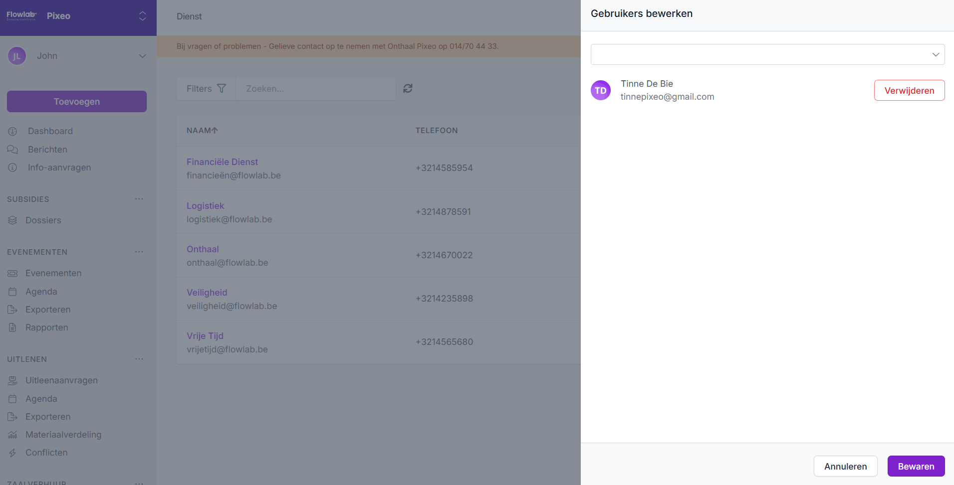 Per dienst kan je bepalen welke gebruikers medewerkers zijn van de dienst. Dit doe je door leden (gebruikers) toe te voegen aan de dienst.