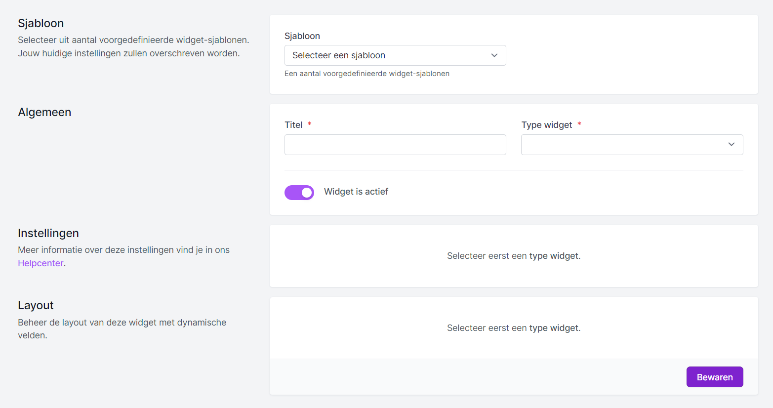 - Type widget: Selecteer hier het item dat je in dit widget wil opvolgen.