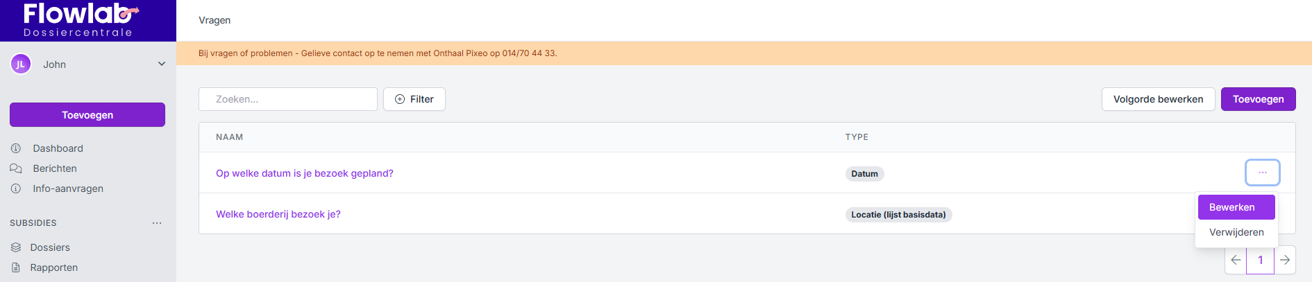 Om vragen bij evenementen te bewerken of te verwijderen, volg je onderstaande stappen. Hou hierbij wel steeds de dossierflow van de module in het achterhoofd.