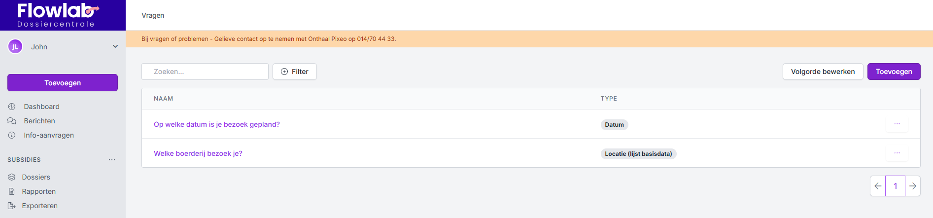 - Selecteer Vragen onder de module Dossierstromen in de linkernavigatie.