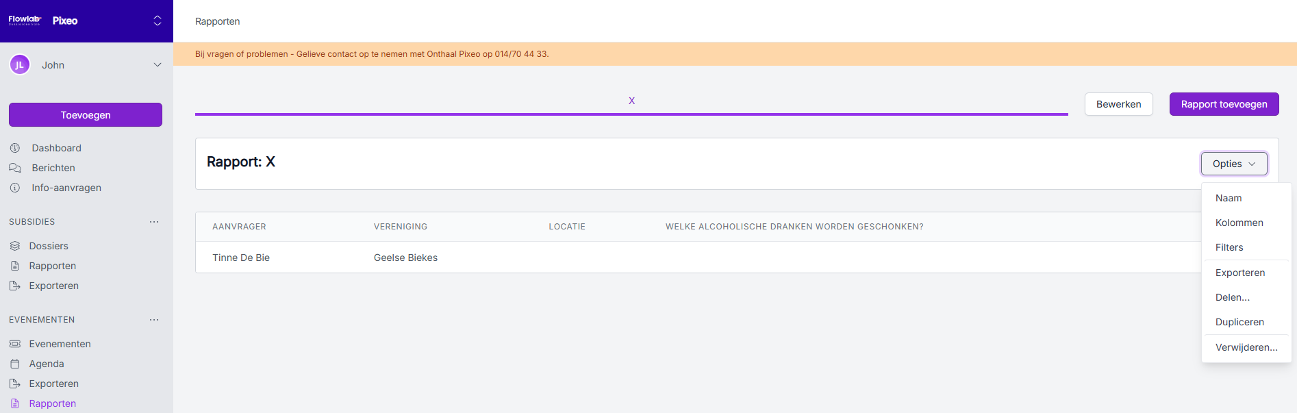 Hoe maak ik een rapportering bij evenementen?
