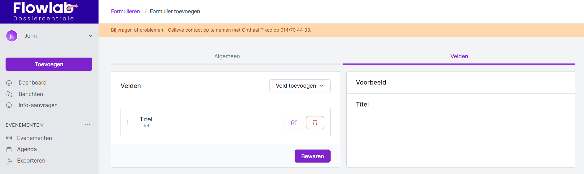- Hierna vul je de tabbladen Algemeen en Velden aan om het formulier op te maken.