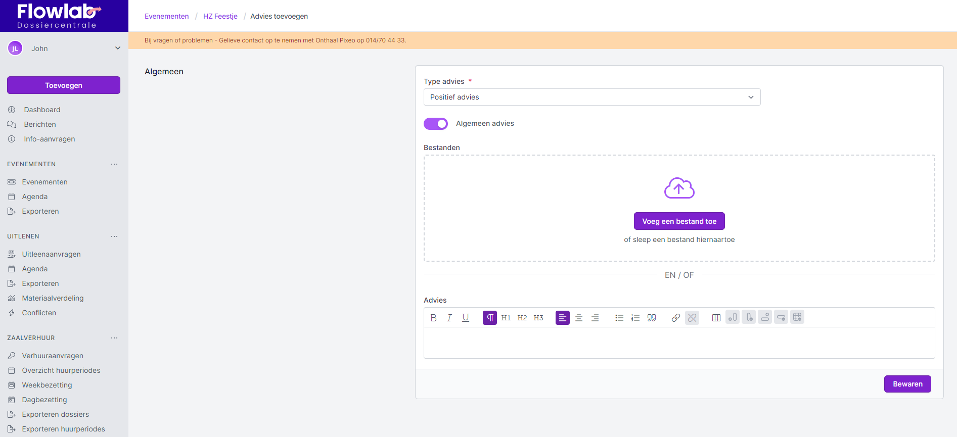 Hoe voeg ik een advies toe aan een evenementsaanvraag?