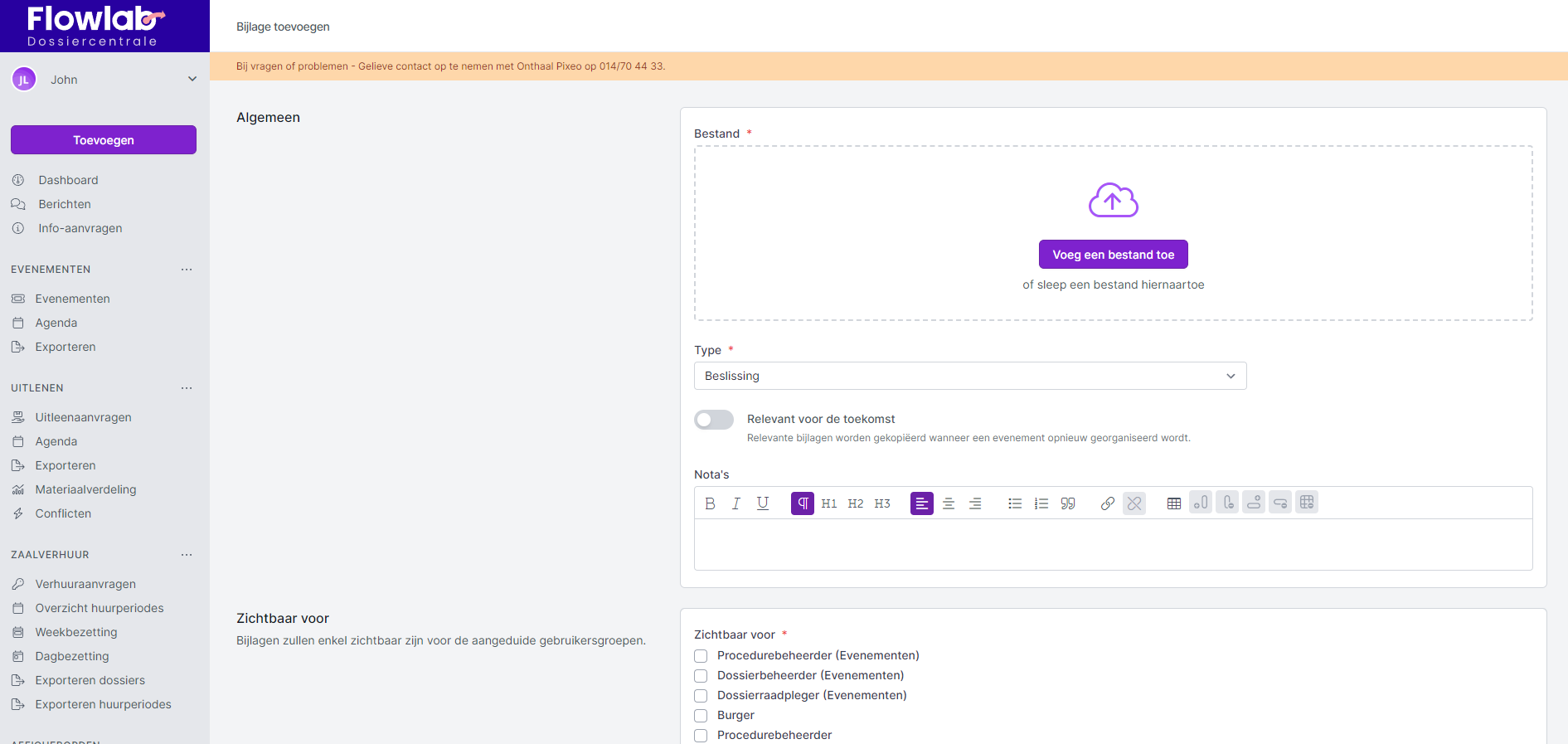 - Zichtbaar voor: Bepaal voor wie deze bijlage zichtbaar is. Wil je dat de aanvrager deze bijlage kan raadplegen, duid dan zeker Burger aan.