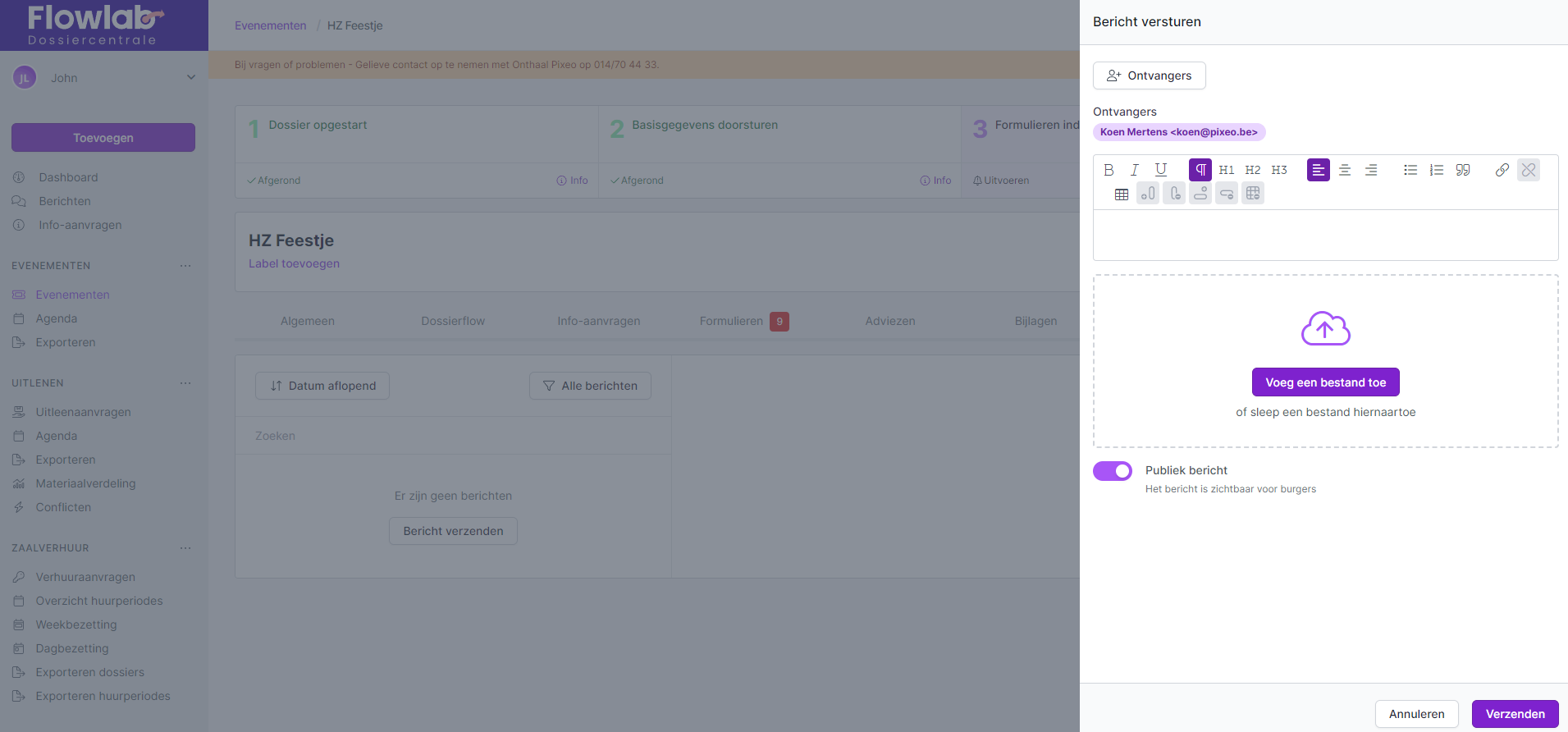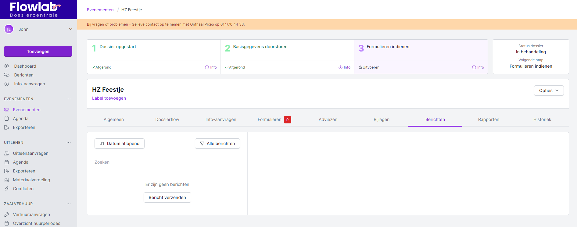 Hoe verstuur ik een bericht bij een evenementsaanvraag?