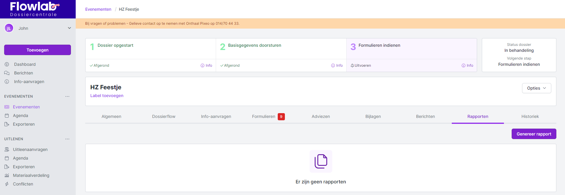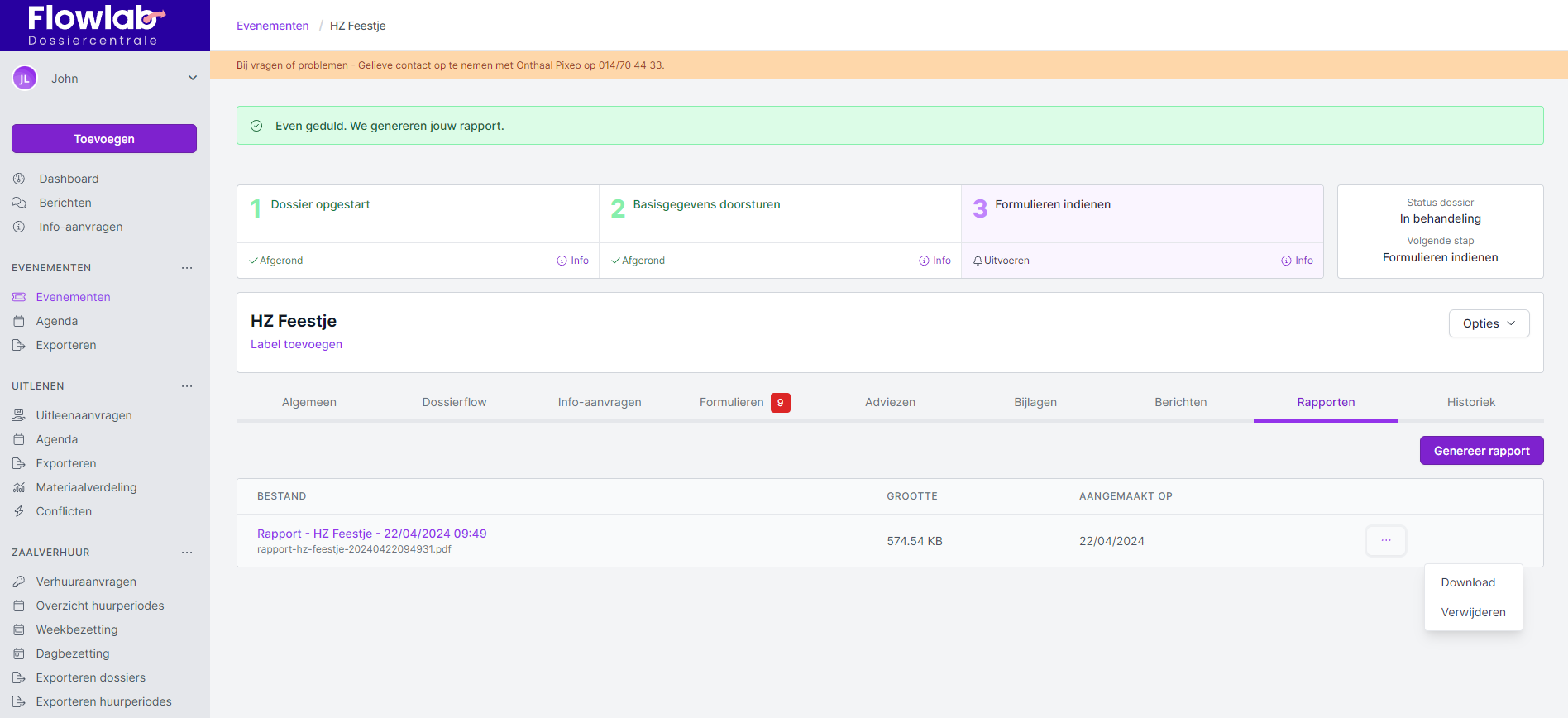 Hoe voeg ik een rapport toe aan een evenementsaanvraag?