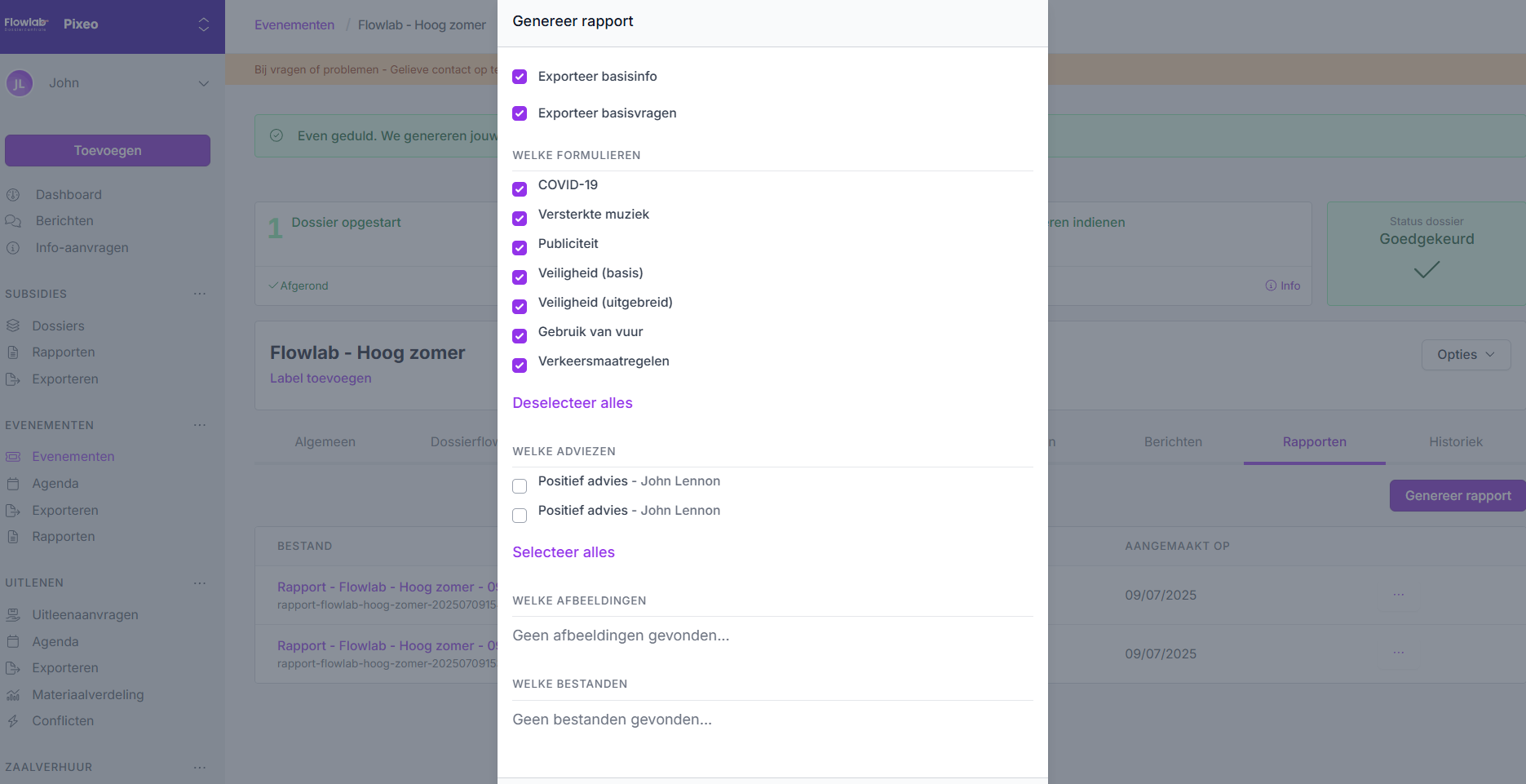 - Klik rechts in het scherm onder het tabblad Rapporten op Genereer rapport.