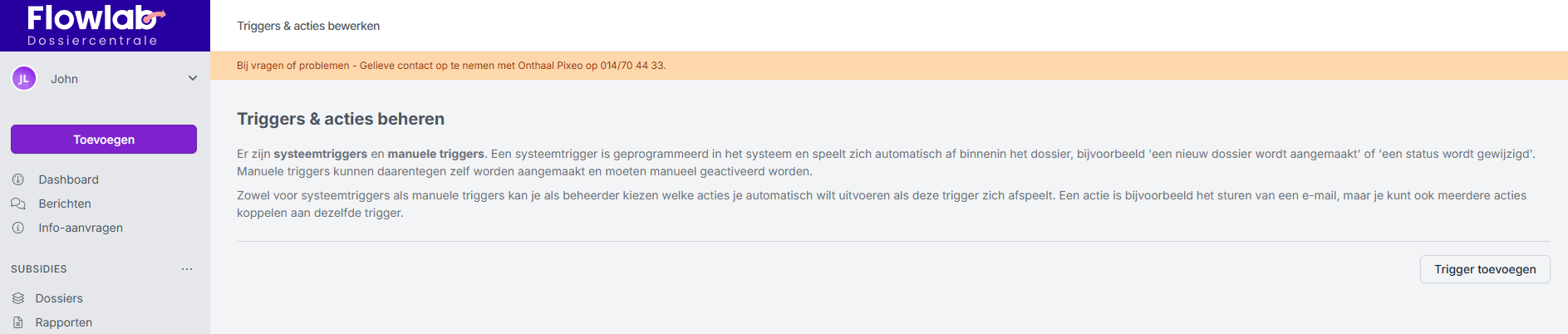 - Klik rechts bovenaan op Trigger toevoegen