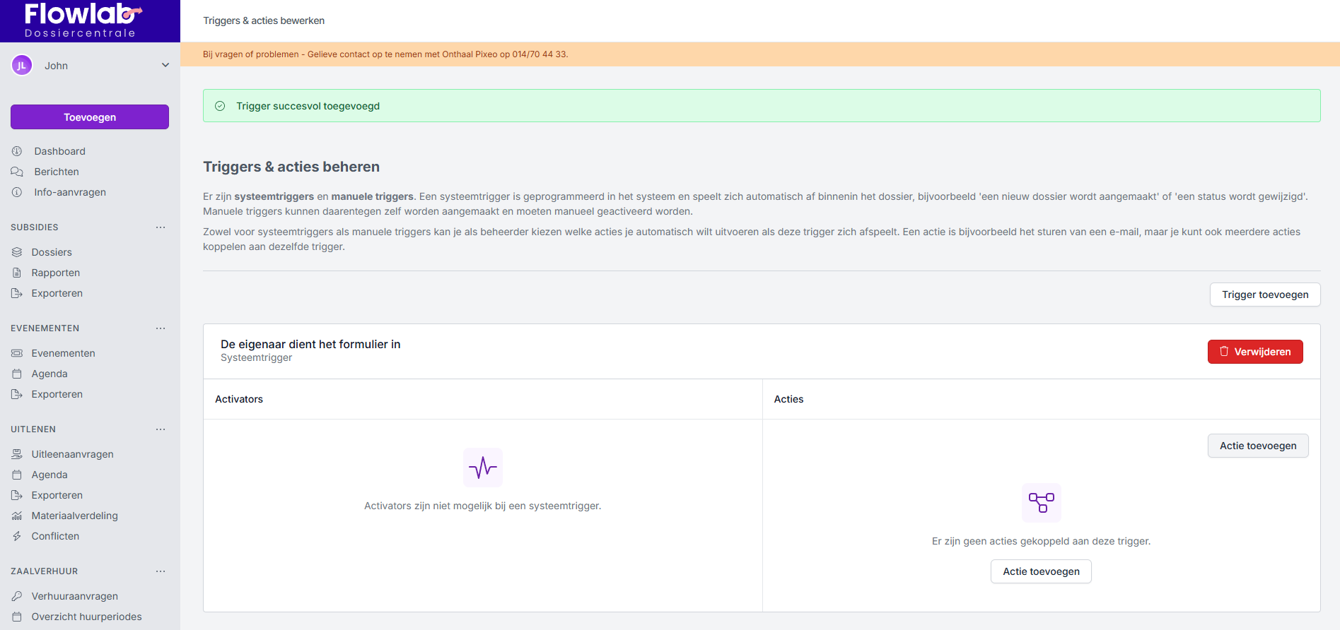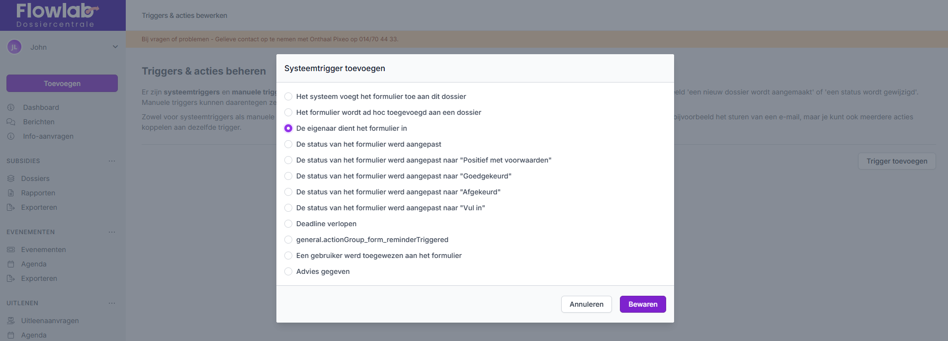 - De trigger is net zoals bij de vorige = De eigenaar dient het formulier in