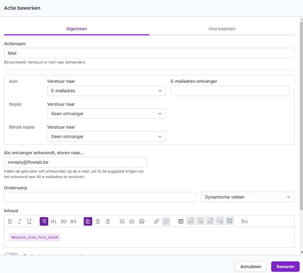 - Actienaam: Geef de mail een gepaste naam