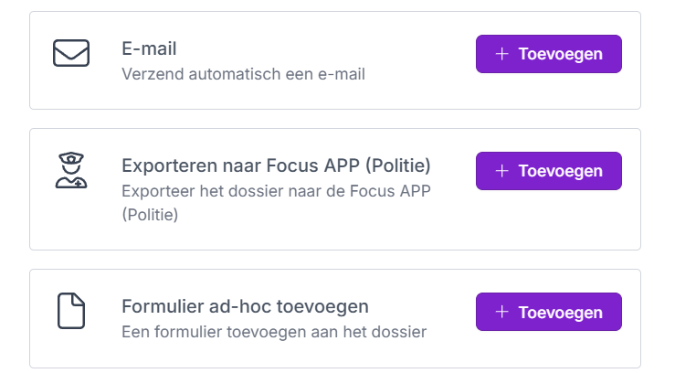 Opgelet: Als je op verschillende momenten in je evenementaanvraag de info wil doorsturen naar de FOCUS-app, moet je de actie meerdere malen instellen, met telkens de bijhorende trigger.