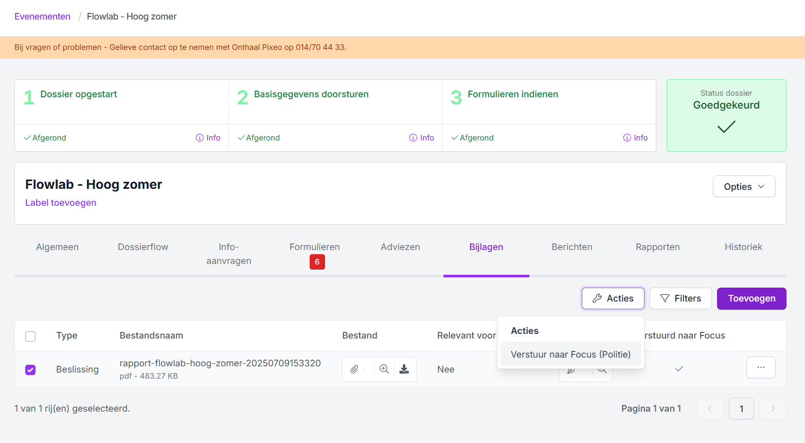 Je kan ook meerdere bijlagen tegelijk versturen door deze aan te vinken en daarna te kiezen voor Acties en dan Verstuur naar Focus (Politie).