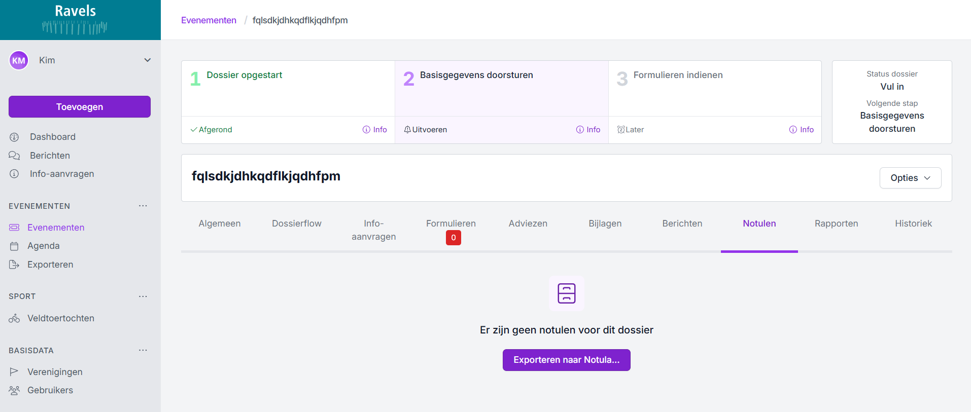 - Klik onderaan rechts op Exporteren om het dossier door te sturen naar Notula.