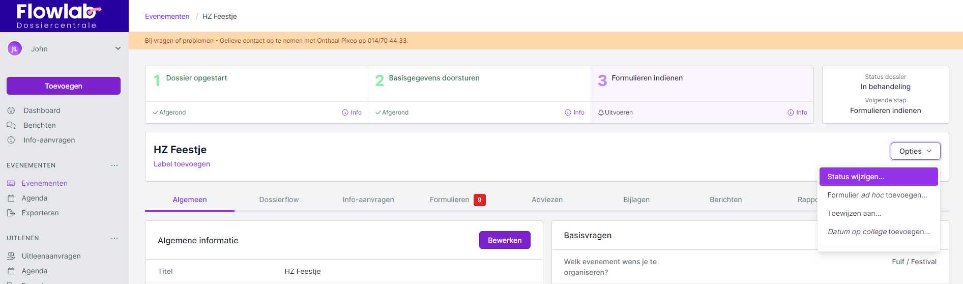 Wanneer je met een aantal collega's de rol van dossierbeheerder opneemt voor de evenementenmodule, kan je de aanvragen onderling verdelen.