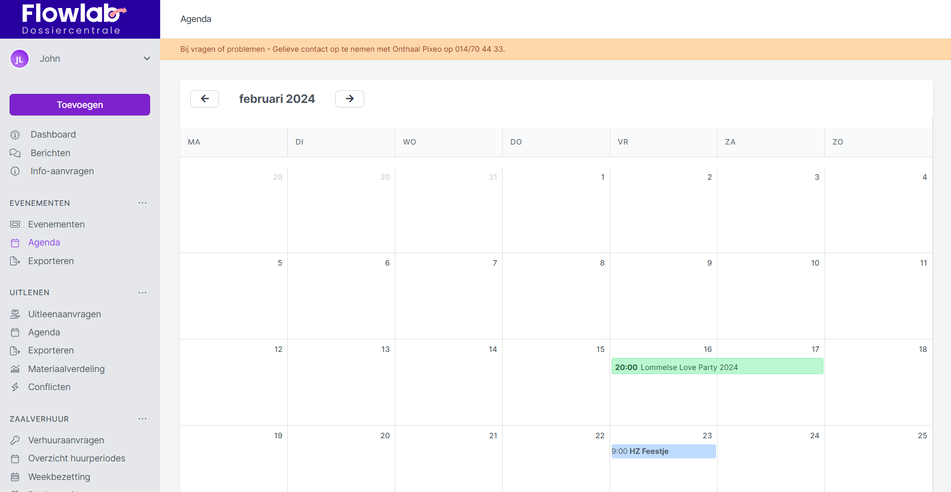 - Per maand zie je een overzicht van de aangevraagde evenementen.