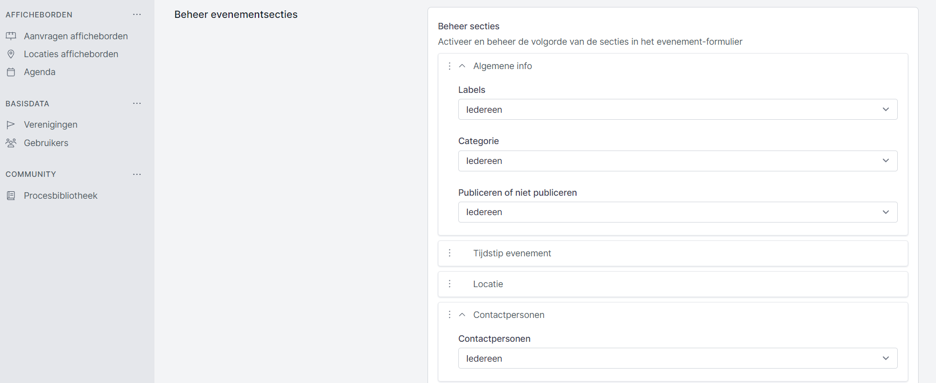 - Beheer evenementsecties (basisinfo)
