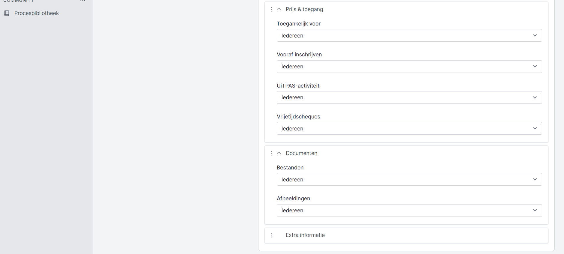- UiTPAS-activiteit: Bepaal hier wie kan aanduiden of het om een UiTPAS-activiteit gaat of niet.