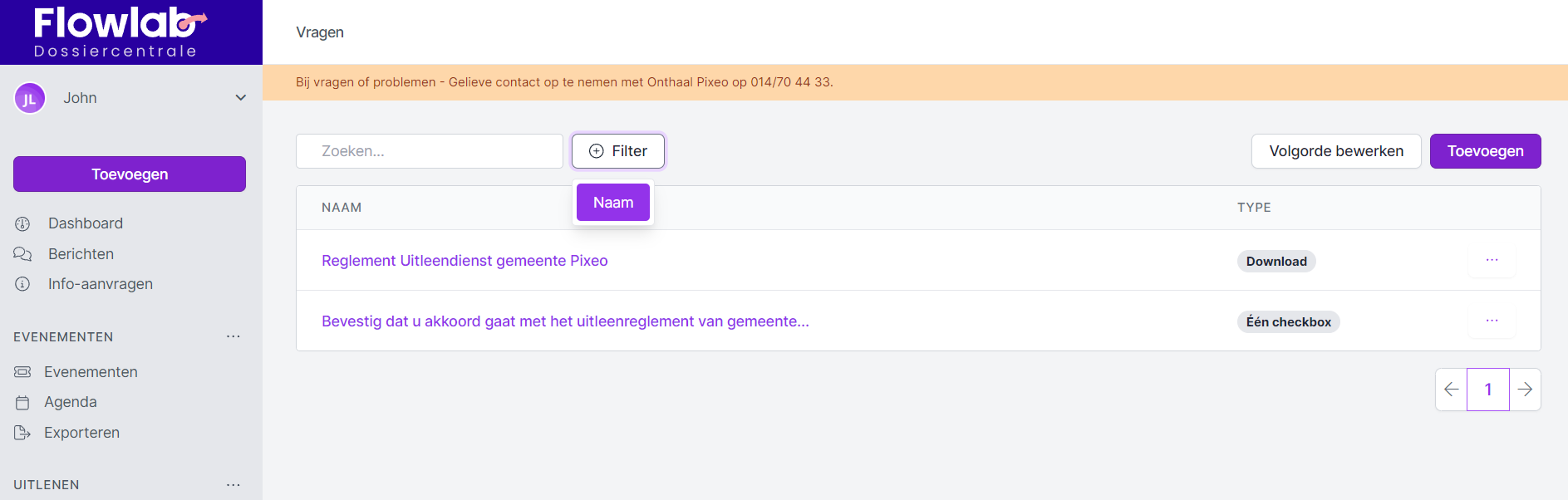Om vragen bij de module Uitlenen te bewerken of te verwijderen, volg je onderstaande stappen. Hou hierbij wel steeds de dossierflow in het achterhoofd.