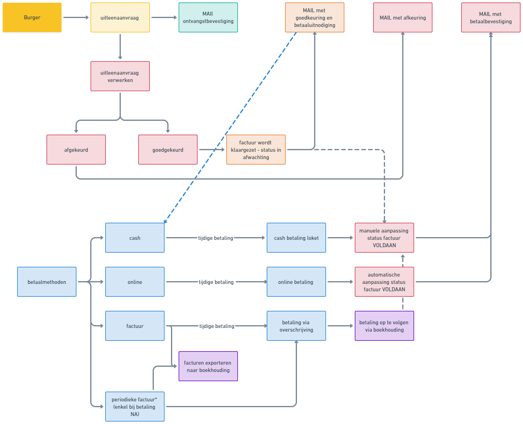 De wijze waarop je facturen verwerkt voor de module Uitlenen is afhankelijk van hoe de betaalflow van jouw gemeente werd bepaald en de betaalmethodes die hierbij gehanteerd worden.