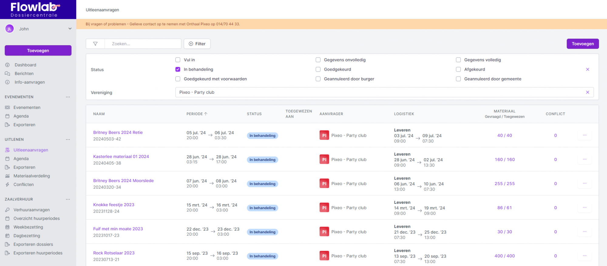 In het overzichtsscherm Uitleenaanvragen onder de module Uitlenen in de linkernavigatie zie je een overzicht van alle uitleenaanvragen.