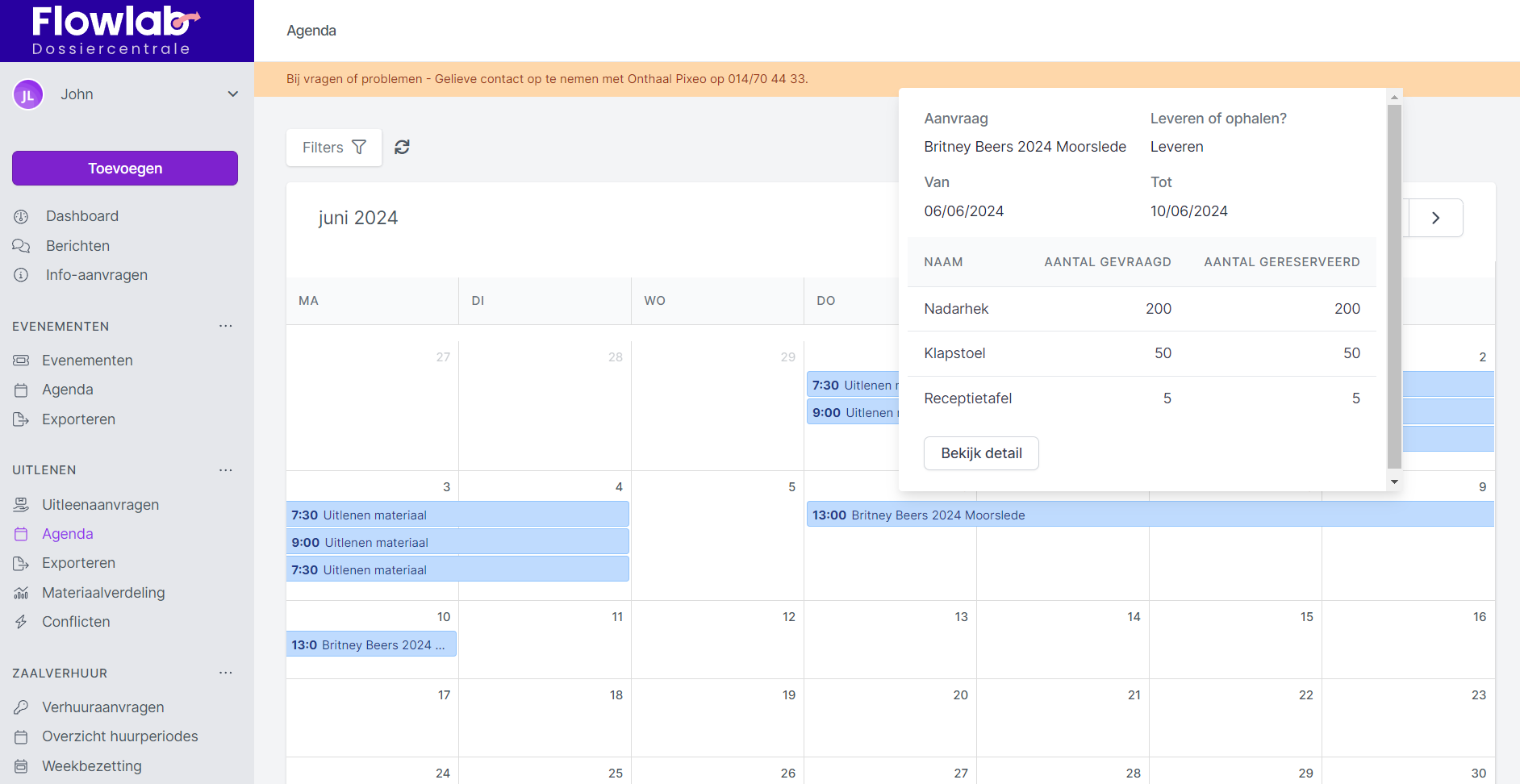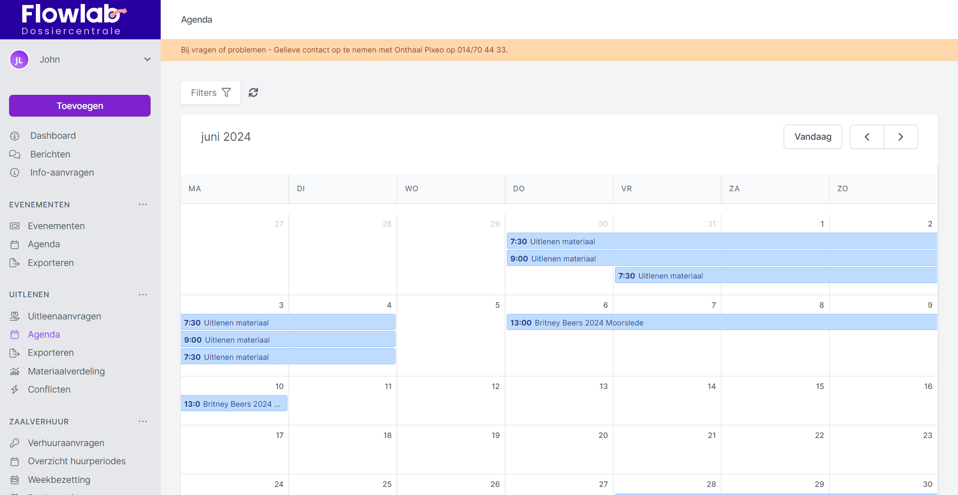 In de agenda bij de module Uitlenen zie je per maand een overzicht van de uitleenaanvragen.