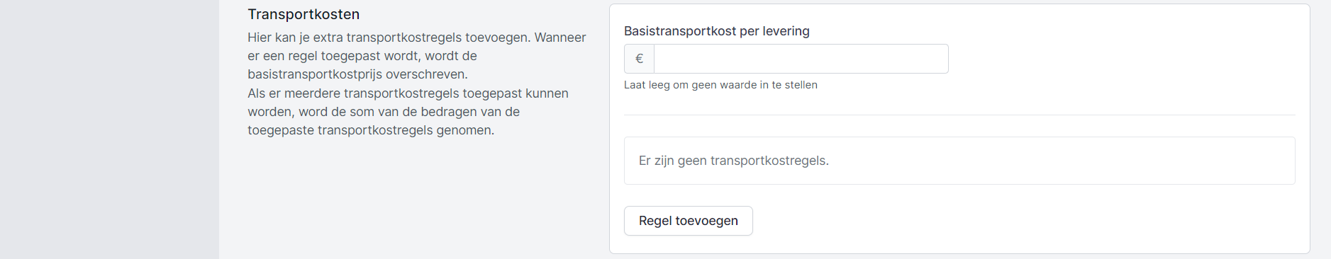 Hier kan je per levering een basistransportkost ingeven, geldig voor alle uitleenaanvragen. Bij het instellen van depots kan je deze instelling overschrijven.