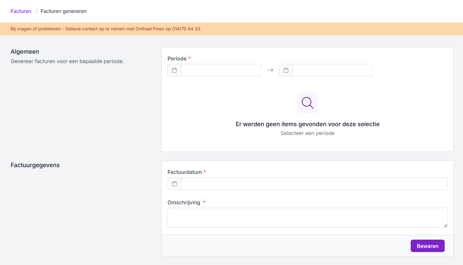Om de facturen te genereren, op een zelfgekozen moment, bij manuele periodieke facturatie volg je volgende stappen: