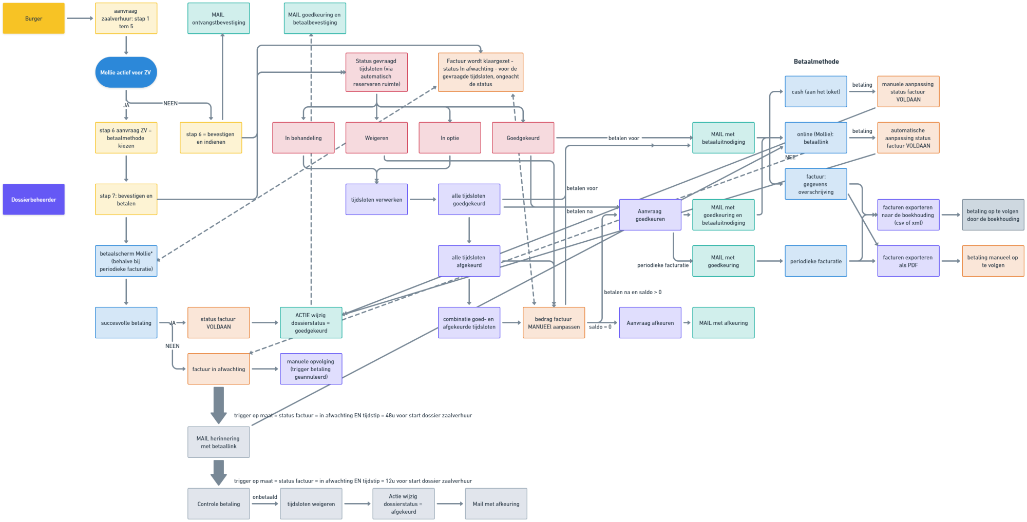 De wijze waarop je facturen verwerkt voor de module Zaalverhuur is afhankelijk van hoe de betaalflow van jouw gemeente werd bepaald en de betaalmethodes die hierbij gehanteerd worden.