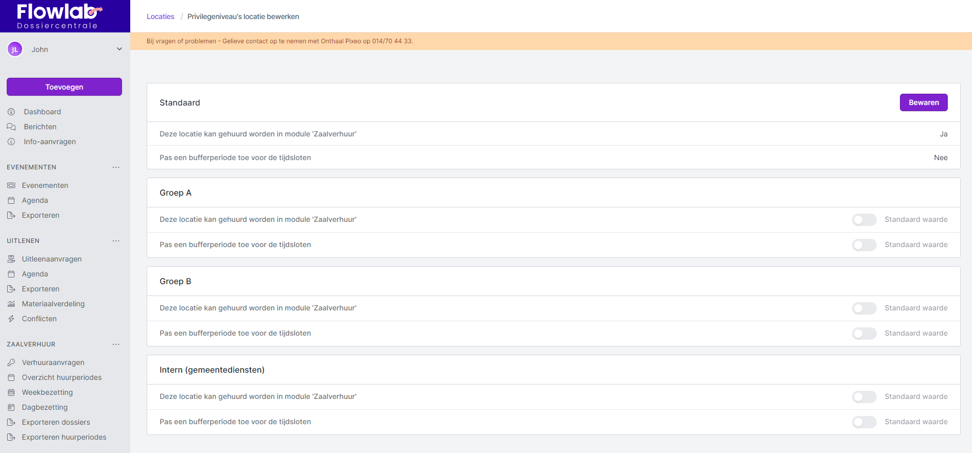 Op locatieniveau kan je bepalen welke groepen de locatie kunnen huren en hoe lang op voorhand ze een locatie mogen boeken.