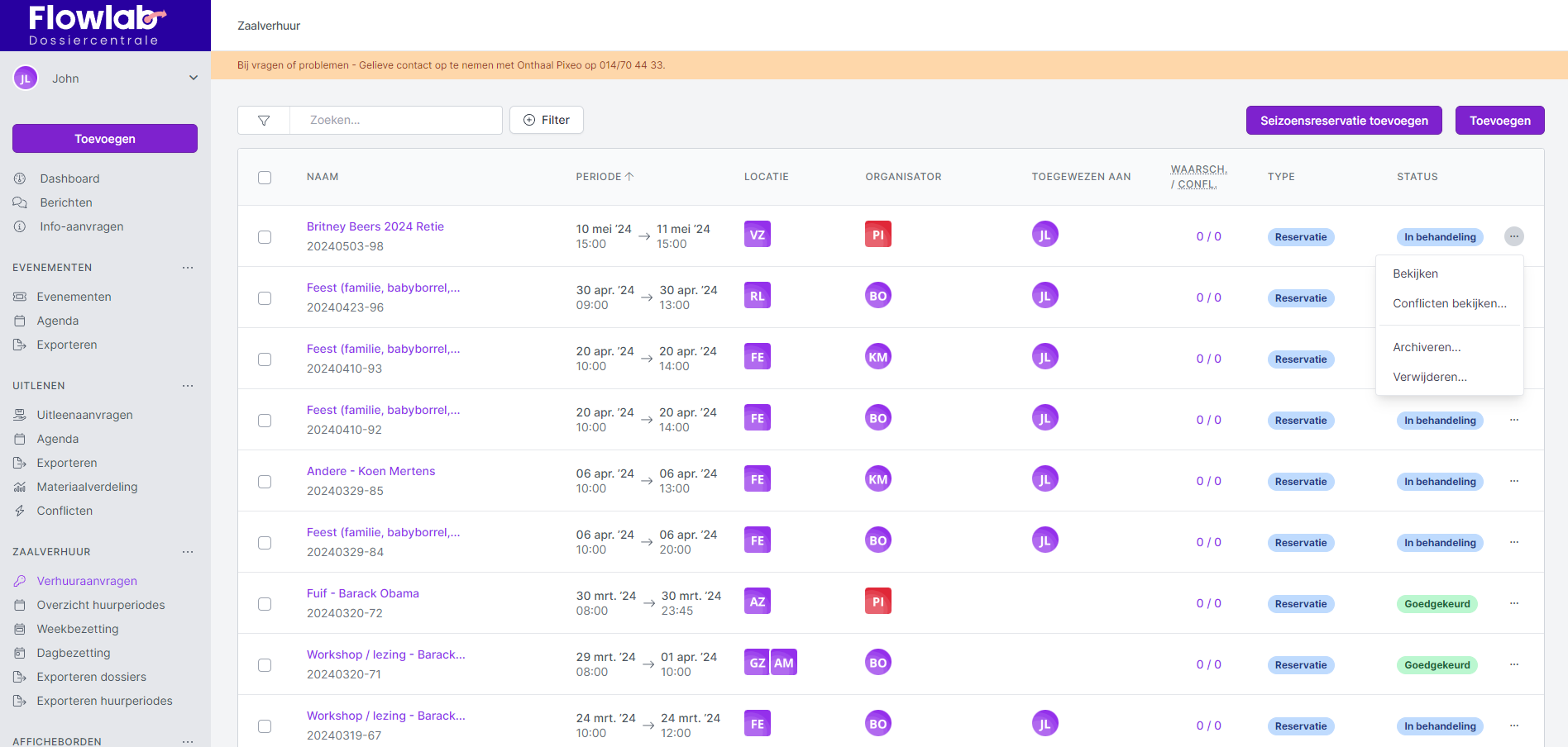 - Selecteer Verhuuraanvragen onder de module Zaalverhuur.