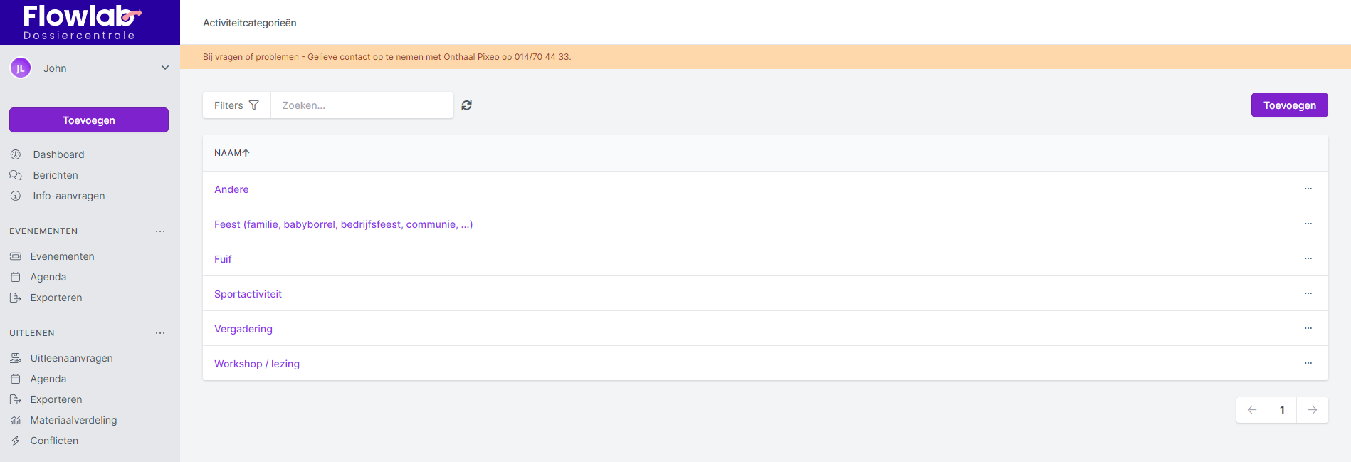 Via de pagina Activiteitscategorieën onder de module Zaalverhuur beheer je de verschillende categorieën van activiteiten die op een locatie kunnen plaatsvinden.