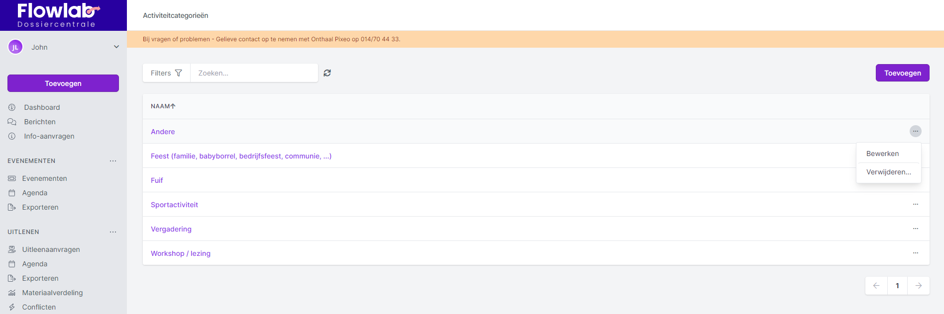 - Een activiteitscategorie bewerken of verwijderen die je heel eenvoudig door op de drie bolletjes achteraan de categorie te klikken en te kiezen voor bewerken of verwijderen.
