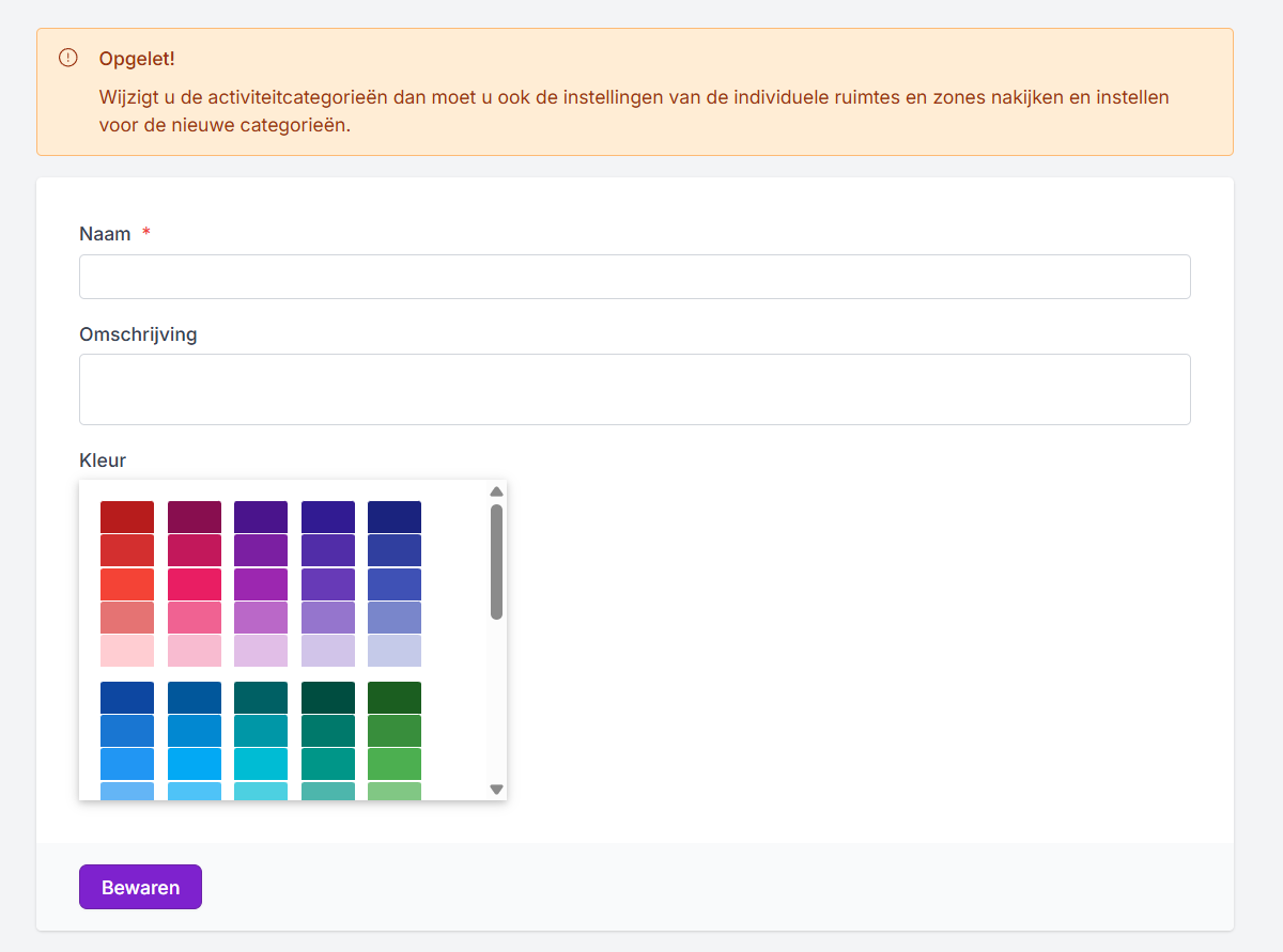 De indeling in activiteitscategorieën is bedoeld om te bepalen voor welke soort activiteiten een locatie beschikbaar is. Deze activiteitscategorieën bepaal je volledig zelf.