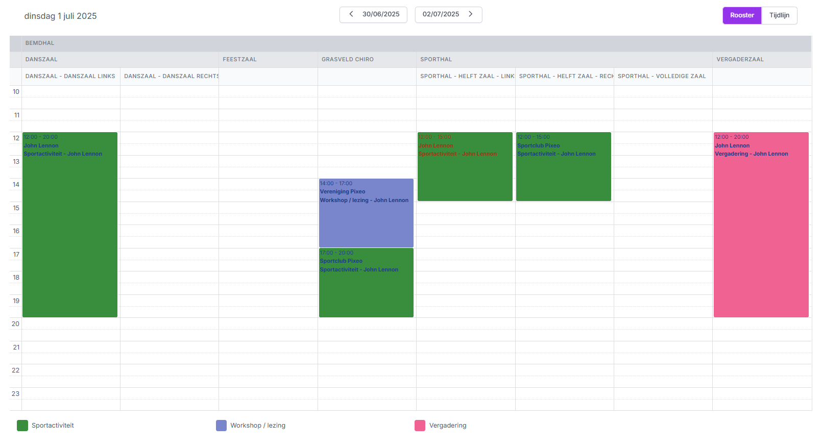 * Voorbeeld bezetting met activiteitscategorieën in kleur