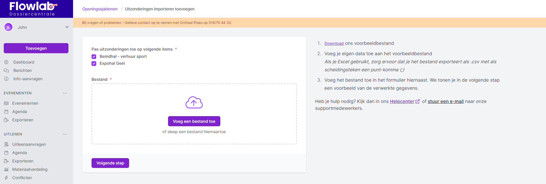 Om de uitzonderingen te importeren, volg je deze stappen: