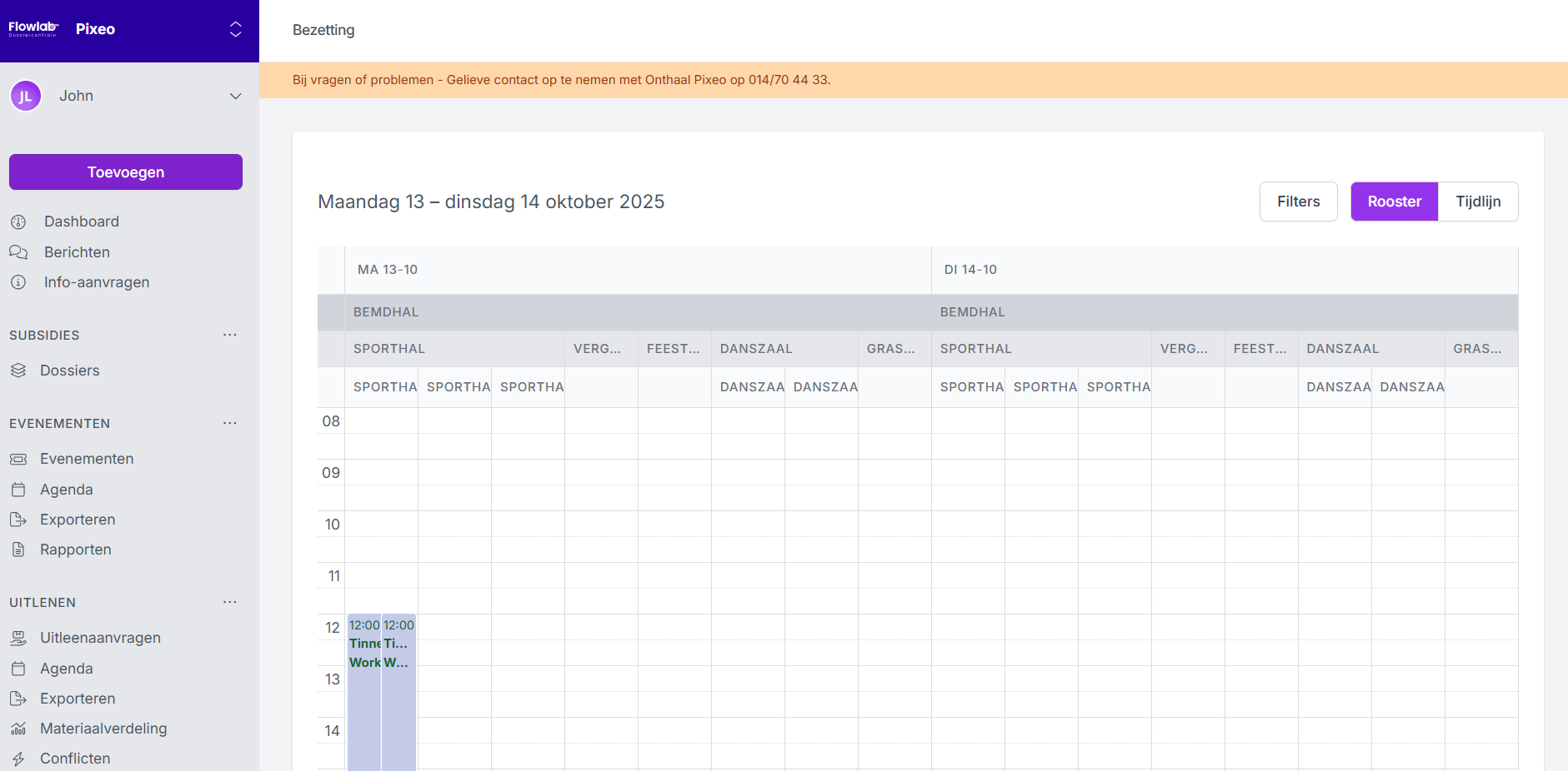 - Selecteer de pagina Bezetting onder de module Zaalverhuur.