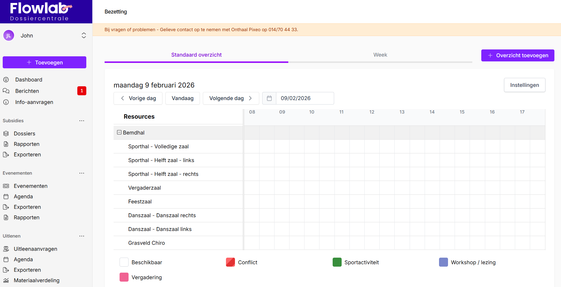 De bezetting wordt getoond op het dashboard van de dossierbeheerder en de gebruiker.