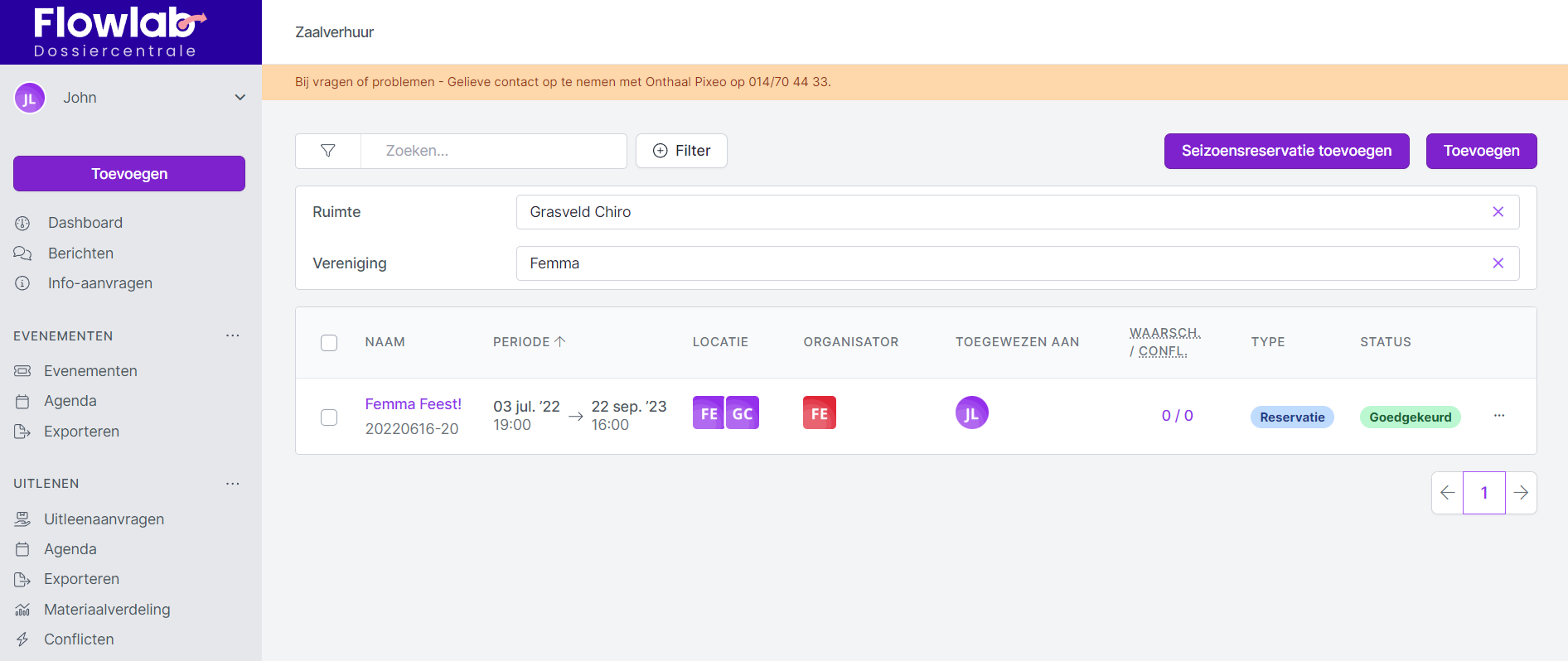 In het overzichtsscherm Verhuuraanvragen onder de module Zaalverhuur in de linkernavigatie zie je een overzicht van alle verhuuraanvragen.