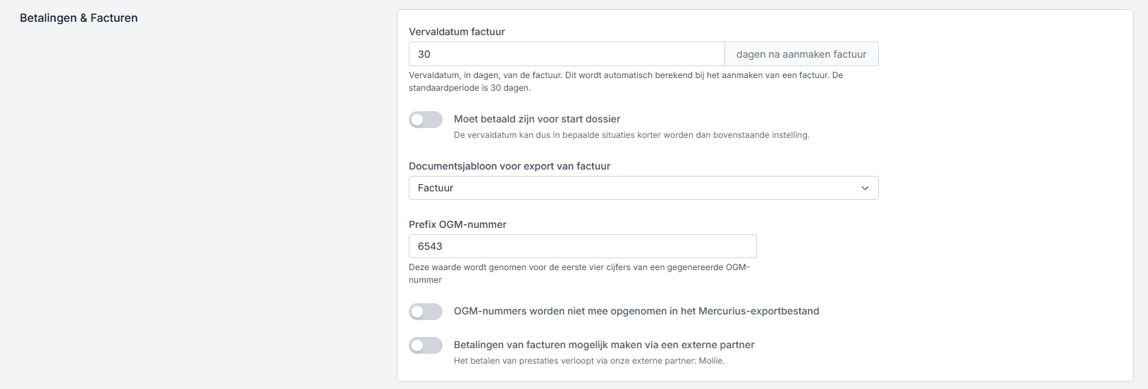 - documentsjabloon, op basis waarvan de factuur gegenereerd wordt