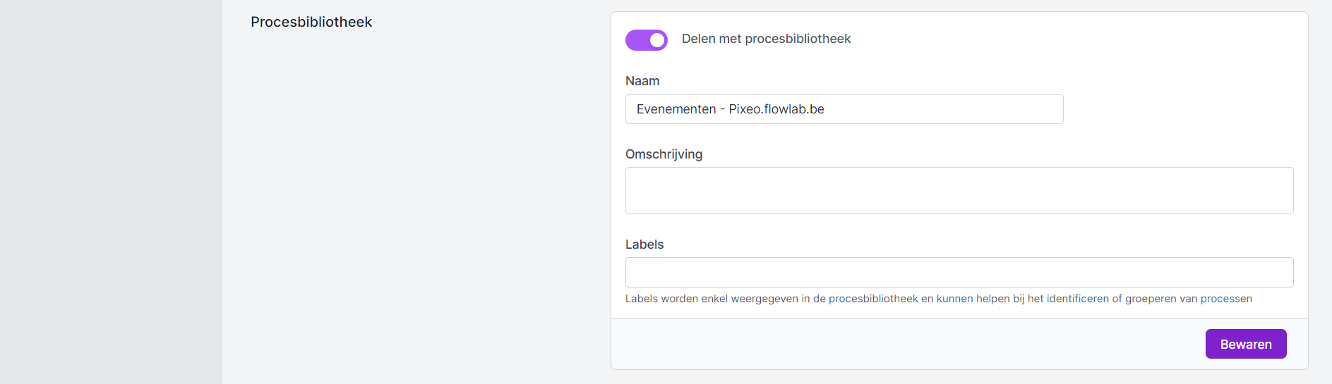 - Activeer onderaan de optie Delen met procesbibliotheek.